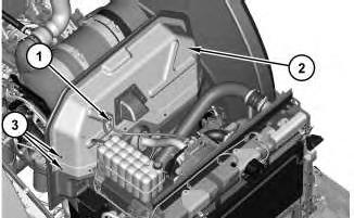 1. Remove bracket (1) and bolts(3) from aftercooler (2) .