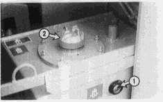 2.Checkthehydraulicoillevelinsightgauge(1).Whentheoiliscold,theoillevelshouldbeto themiddleofsightgauge(1).Whentheoilishot,theoillevelshouldfillsightgauge(1).