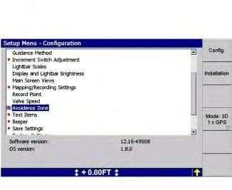 1.Fromthe"SetupMenu–Configuration"dialog,pressthearrowkeysuntil"Avoidance Zone"ishighlighted.