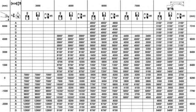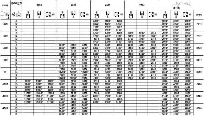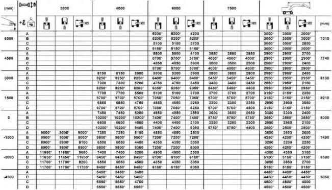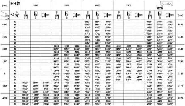 Note:Liftingcapacitiesarebaseduponastandardmachinewiththefollowingconditions: