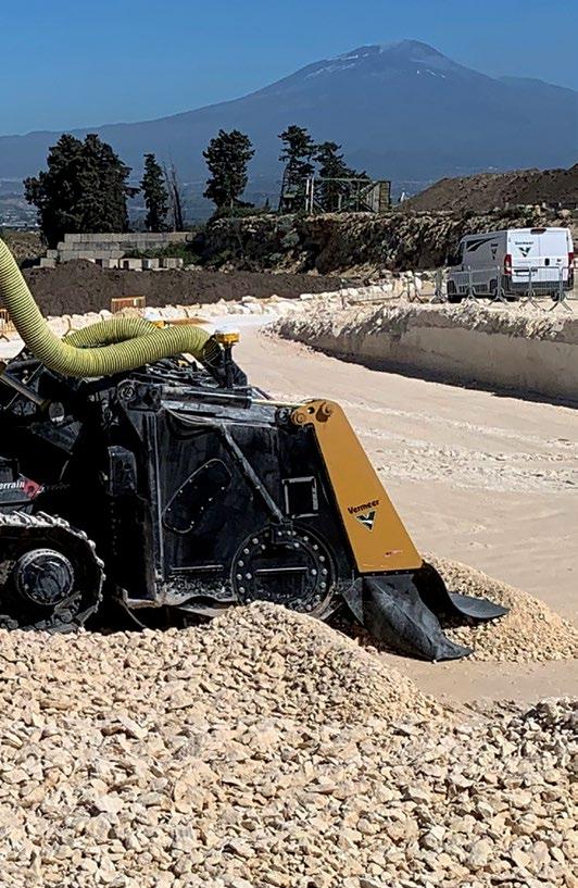 The Vermeer T1255III surface excavation machine (SEM), for example, delivers enhanced production and efficiency. It has a fully hydrostatic motor mounted to the side of the cutting head, which provides direct drive power and delivers more horsepower to the cutting drum, resulting in enhanced efficiency when working in soft, medium or hard rock conditions.
