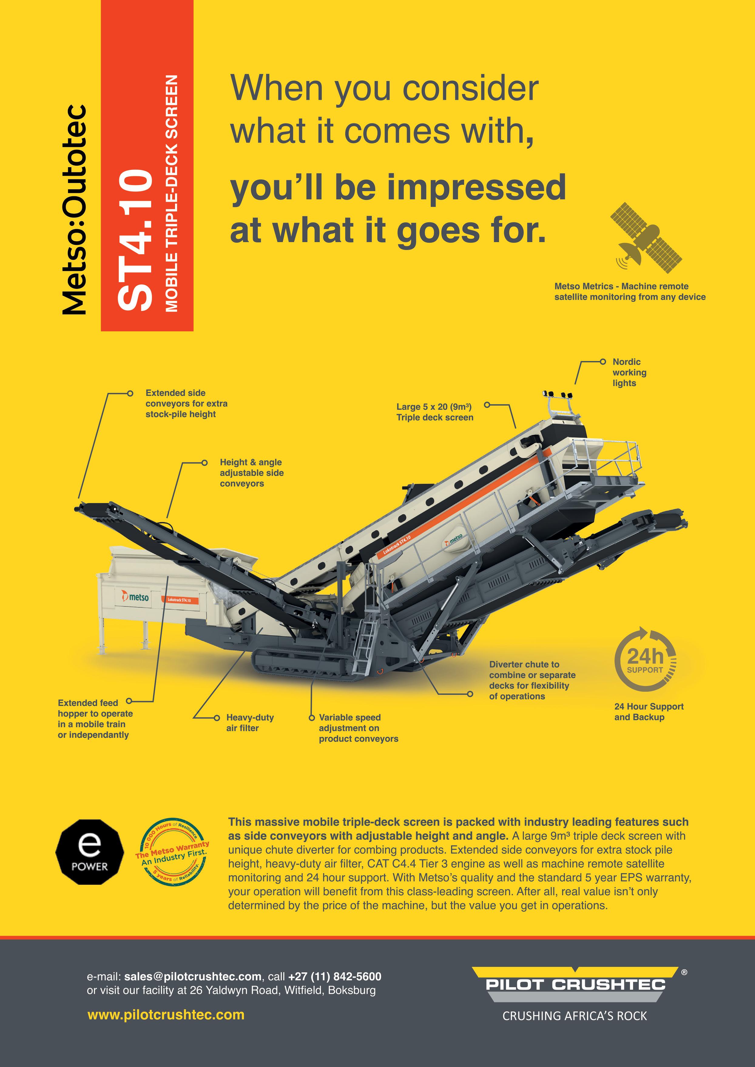 INFORMATION HUB FOR THE SUB-SAHARAN AFRICAN QUARRYING SECTOR PREMIER INFORMATION HUB FOR THE SUB-SAHARAN AFRICAN QUARRYING SECTOR Pressing ahead with environmental compliance Blast optimisation pays off At the quarrying edge VOL. 1 ISSUE 6 08 12 18 LOADING LARGER TONNAGES