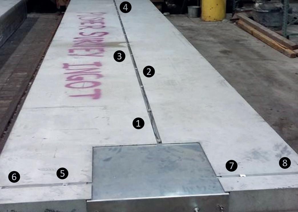 Fig 6. Test Slab with thermocouple channels routing MI thermocouple cable to point of measurement at the desired depth (channel 1-8).