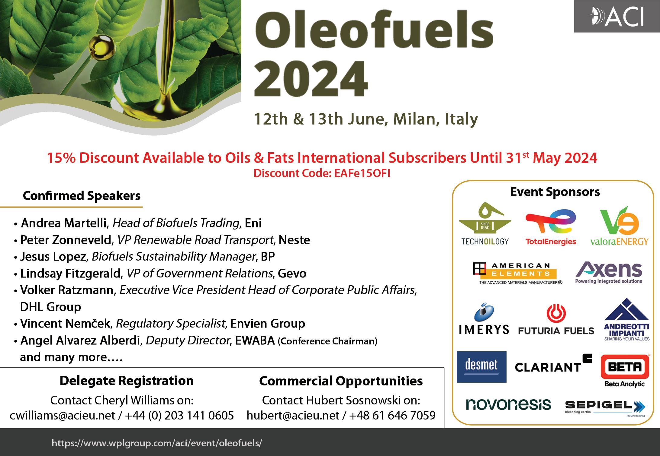 Oils & Fats International (USPS No: 020-747) is published eight times/year by Quartz Business Media Ltd and distributed in the USA by DSW, 75 Aberdeen Road, Emigsville PA 17318-0437. Periodicals postage paid at Emigsville, PA.