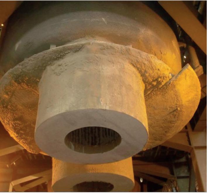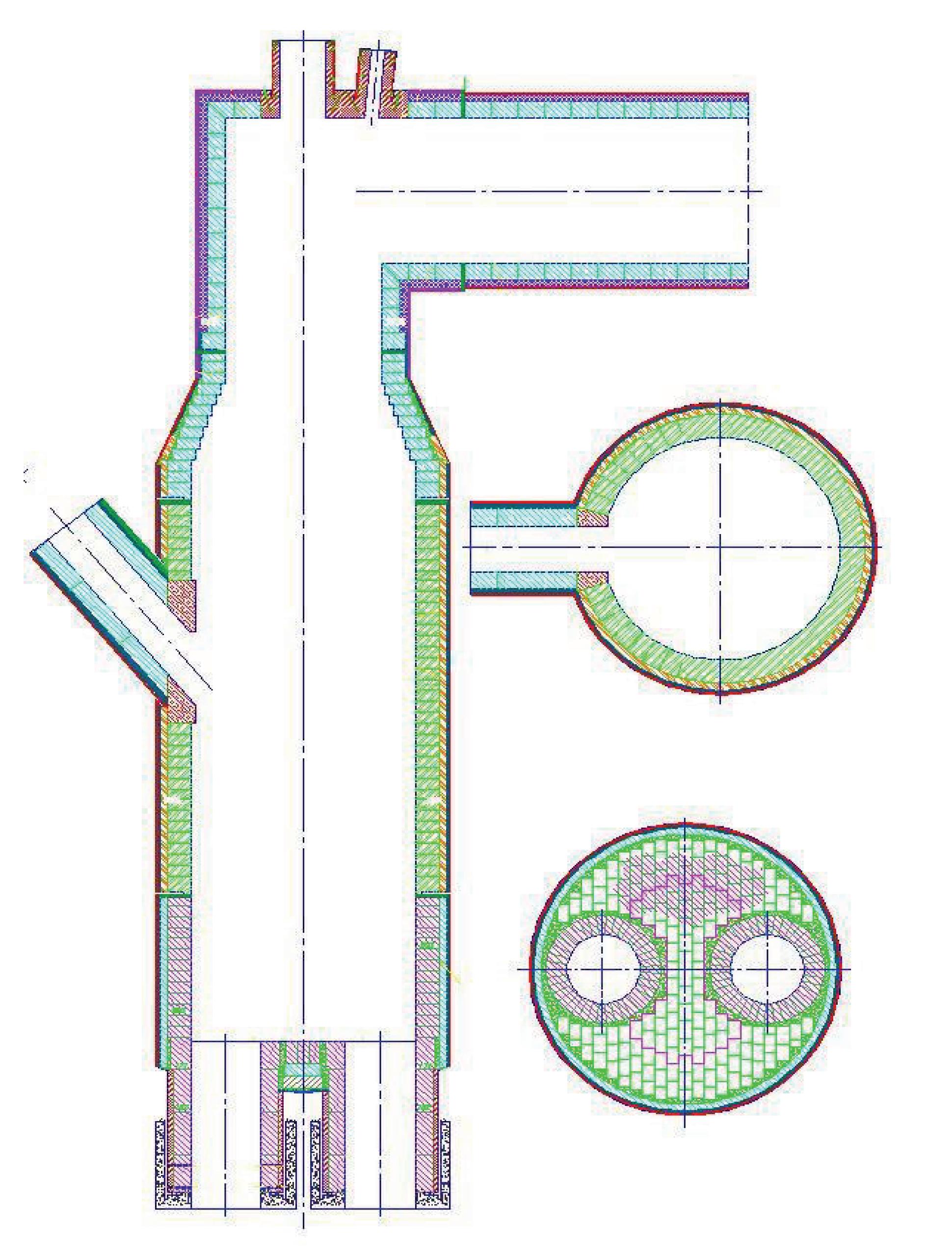 The higher level of steel resulted in increased steel splashing inside the vessel and thereby eroded the refractory and subsequently the brick retainer plate. To take care of the unacceptable high rise of liquid steel, the height of the retainer plate was increased by 300mm. Height increase protected the brick covering of the plate from becoming eroded which, in turn, increased the life of the retainer plate as well as that of the lower and middle vessels as shown in Fig 6. HA 90 dense castable was also used to patch the area to retard brick erosion in this vulnerable region.