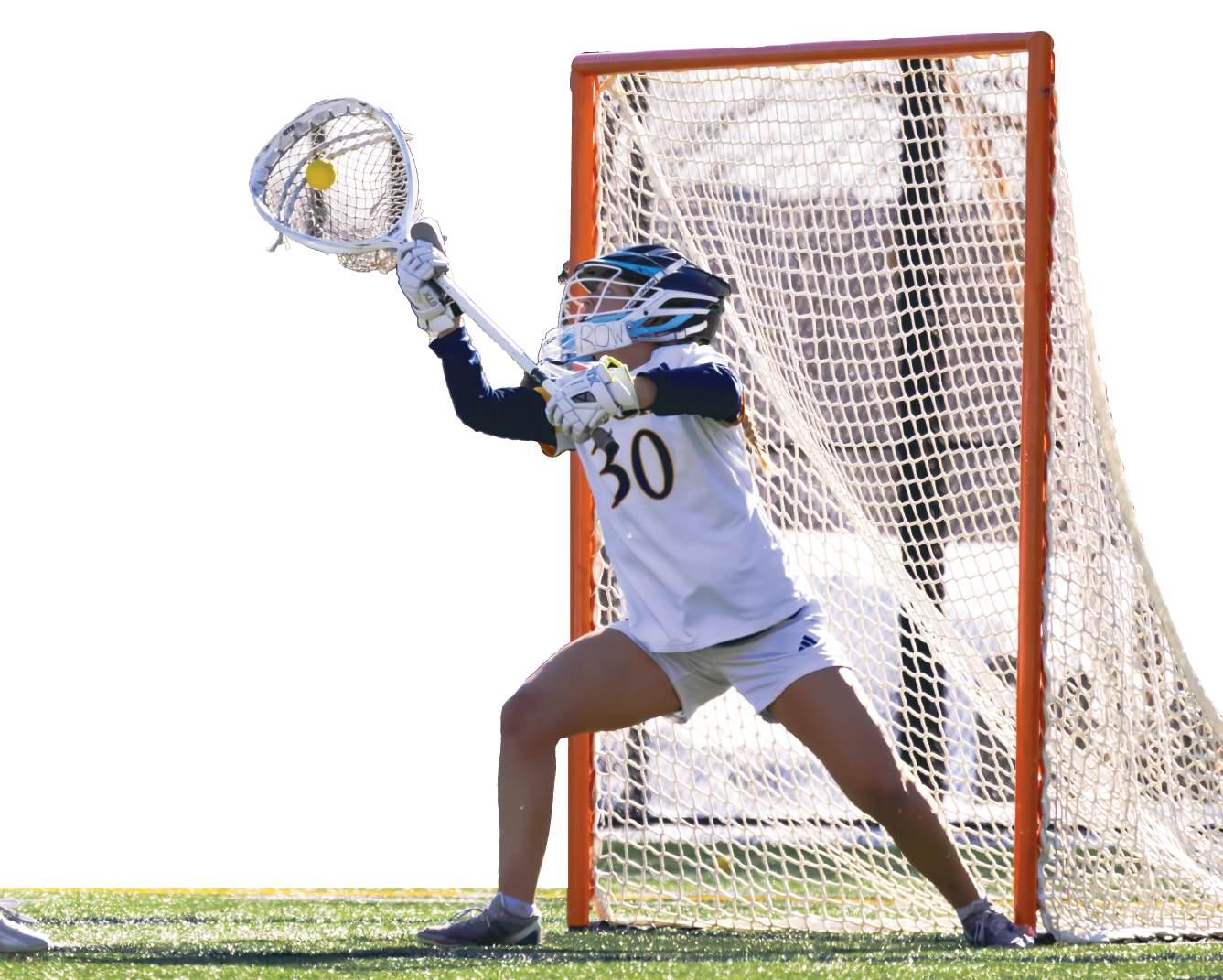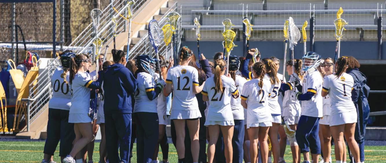 including a 15-14 victory over Quinnipiac March 25. The key to those victories? Offense. The Golden Griffins have outscored their opponents by an average of 5.1 goals per game, leading the MAAC in goals scored (246), points (22.8) and shots (30.8) per game. Freshman attacker Ella Forcucci has been a huge part of this success. Not only does the Orchard Park N.Y. native lead the team in goals, but she leads the entire conference in goals scored with 58 while also recording four five-goal games and 13 multi