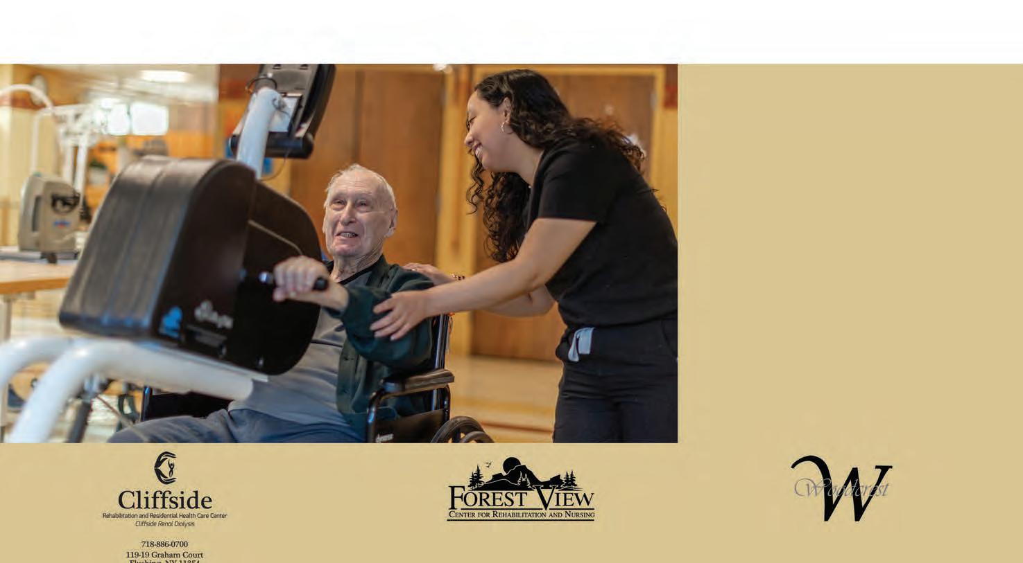 Assisted Living Options overwhelming? I can help guide you through the maze of senior care options. W Assisted Living, Memory Care, Independent Living Teres Rodney 917.830.7088 y 8 144-45 87th Avenue Briarwood, NY 11435 www.silvercrest.org 718 480 4000 Your Center for Rehabilitation and Ventilator Care S ENIOR L IVING G UIDE • S UMMER 2023 QUEENS CHRONICLE • SENIOR LIVING GUIDE,