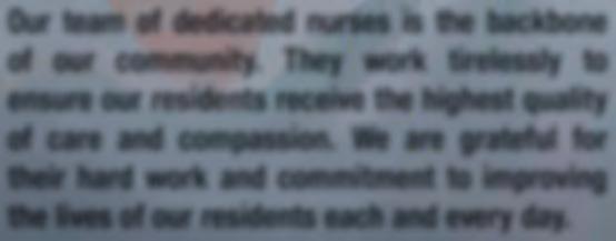 Our team of dedicated nurses is the backbone of our community. They work tirelessly to ensure our residents receive the highest quality of care and compassion. We are grateful for their hard work and commitment to improving the lives of our residents each and every day.