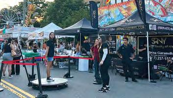 offerings included sausage and peppers, birria tacos and Philly cheesesteaks, all made fresh, far right. Kids enjoyed games and the thrilling opportunity to win prizes, right. Above center, newly minted Community Board 10 member and area realtor Brina Ciaramella offered a unique experience with a 360-degree photo booth, and, at left, residents relish in the lively atmosphere. — Kristen Guglielmo