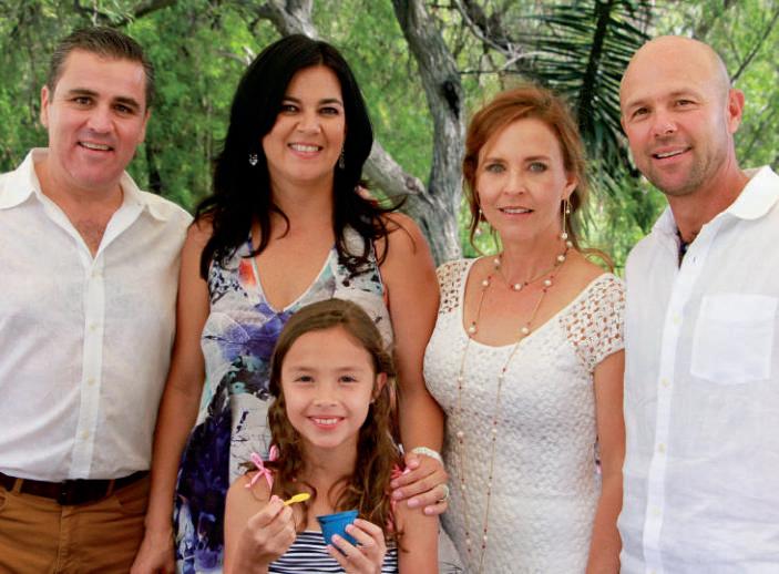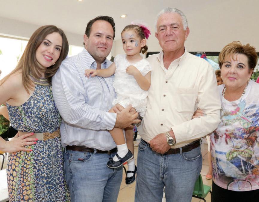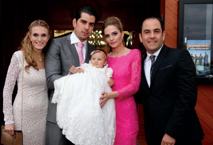 Isabela con sus padrinos y papás, Carla Huber, Alejandro Valladares, Miriam Huber de Humara y Hugo Humara.