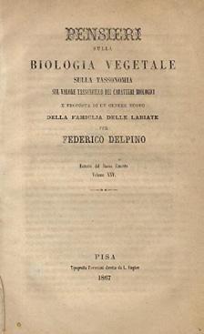 Pensieri sulla biologia vegetale (1867), definita da Delpino lo studio delle relazioni, e dei conseguenti adattamenti morfologici degli organismi vegetali con l'ambiente.