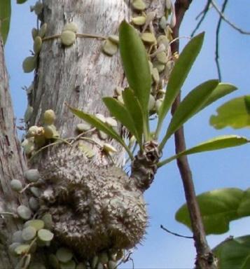 Esempio di pianta australiana del genere “Myrmecodia” (piante delle formiche) che producendo essudati zuccherini instaurano alleanze con le formiche per ricavarne una sorta di difesa dai parassiti.
