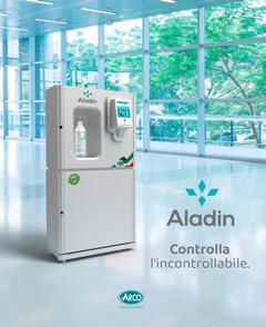Aladin is an automated dosing system created with the aim of providing a highly technological and safe solution in the cleaning sector. The Aladin system allows, through the new Aladin web platform, the preventive programming of the product dilutions prepared based on the activities carried out on the construction site and according to the needs of the customer. Once the configuration is complete, this is sent to the machine which, immediately, through an electronic scale managed by a tablet, delivers super concentrated chemical product and water according to the container and the programmed dosage. The electronic scale allows to always obtain the correct dilution of the product in the bottle whether it is completely empty or contains product residue from the previous day. The Aladin system completely eliminates the chemical risk as the super concentrated product canisters are locked in a compartment under the dosing system that is not accessible to operators except those authorized. The product mixed and diluted by the Aladin system loses all symbols of danger making it harmless for the user. Aladin is ideal for multiple sectors: Healthcare, Welfare, Hospitality, School and University, Wellness, Commercial, Civil and Industrial.