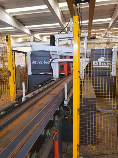 La soluzione studiata da ISTech per Siderurgica Dall’Era permette di evi tare i tagli di intestatura delle travi; la morsa frontale sdoppiata limita al massimo l’avanzo del profilato. La bocca di scarico dell’evacuatore tru cioli, posta a un metro di altezza, permette alla macchina di lavora re ininterrottamente per molte ore senza che sia necessario l’intervento dell’operatore.