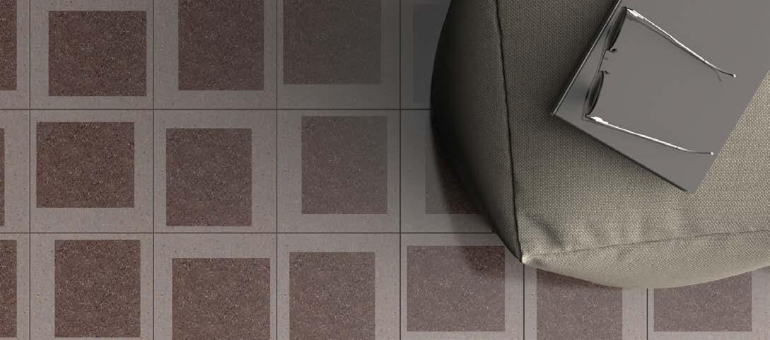 Nel 2022, lo studio Meneghello Paolelli ha iniziato la prima collaborazione con MIPA, azienda leader nel mondo delle pavimentazioni e dei rivestimenti in graniglia. La prima colle zione messa a punto si chiama Optical Trips e si articola in quattro diverse linee (Vertice, Traverso, Mediana, Eccentrica). I quattro deco ri sono accomunati da una matrice progettuale comune: un unico modulo, disposto casual mente, genera superfici con pattern e decori anche molti diversi tra loro. Configurazioni e decorazioni sono completamente eterogenee fra loro, a seconda delle combinazioni dei vertici, delle linee diagonali, mediane o, come nel caso di Eccentrica, a seconda della dispo sizione di un rettangolo decentrato rispetto al perimetro esterno. Alla disposizione casuale si aggiungono ovviamente alcuni schemi di posa suggeriti dall’azienda. Il progetto ha quindi un risvolto particolarmente fantasioso, anche se parte da un intrinseco rigore geometrico. I decori sono per lo più composti solo da linee rette a 90° e 45°, e da raggi.