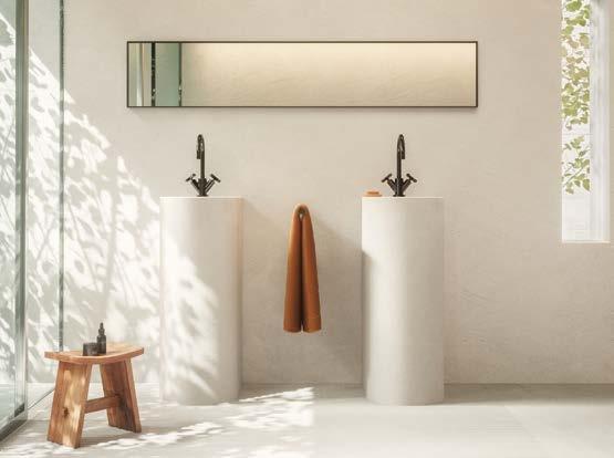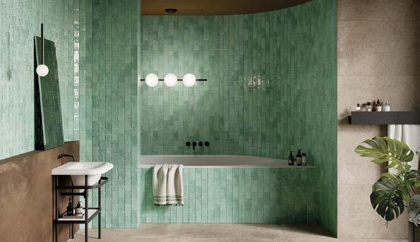 hanno suggerito la compenetrazione tra colore e materia, per ottenere un materiale tridimensionale e raffinato. La struttura della materia dona al colore profondità e dinamicità, e in que sto modo la ceramica torna ad avere l’aspetto della ceramica e non di un materiale che ne imita un altro. Il risultato è una gamma di 12 varianti di colore ispirate alle tonalità della natura: dall’ocra, alla terra, passando a colori più freddi, come il verde e il blu, fino ai neutri e i grigi. I colori si possono combinare facilmente tra loro, e con le altre collezioni del brand. Le lastre di Pigmenti sono anche straordinariamente sottili. Una seconda pelle ceramica di soli 3,5 mm in lastre di grande formato (3x1m) che possono essere usate su superfici verticali, all’interno, o all’esterno, su facciate o per rivestire arredi outdoor. Il materiale, oltre che versatile, grazie allo spessore e al peso ridotti, è anche più sostenibile. Lo spes sore, ridotto di 2/3 rispetto alle piastrelle tradizionali, richie de infatti un minore consumo di materie prime, energia e di acqua, riduce l’inquinamento da trasporto e le emissioni di CO2 rendendo le lastre tra i materiali più ecosostenibili per l’edilizia. Inoltre, grazie al loro ridottissimo spessore, le lastre possono essere posate in sovrapposizione ai rivestimenti esistenti, senza creare rifiuti di natura edile per la rimozione dei materiali precedenti.