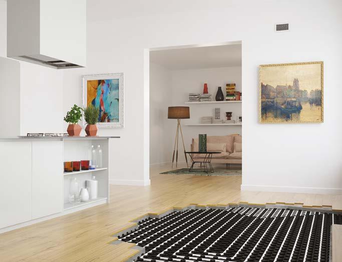 Il sistema V-ERRE - la soluzione per il riscaldamento e il raffrescamento a pavimento di edifici residenziali e uffici - è ideale per ogni installazione, dai contesti tradizionali (sistemi con isolamento fino a 60 mm) a quelli moderni (sistemi a bassa inerzia, con spessori inferiori a 40 mm incluso il rivestimento).
