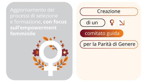 - il sostegno economico al congedo parentale, con integrazione al 60% della retribuzione; - dei piani di crescita inclusivi per le persone in azienda.