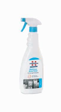 Amuchina Multiuso Area Food, lo sgrassa tore ad azione igienizzante per le pulizie delle superfici, può essere utilizzato in tutte le aree di produzione e di confezionamento dell’industria alimentare e della ristorazione. Si asciuga rapidamente ed è particolarmente indi cato per forni a microonde, affettatrici e super fici in acciaio. Non produce schiuma e non c’è alcun rischio di graffi o striature perché non con tiene sostanze abrasive.