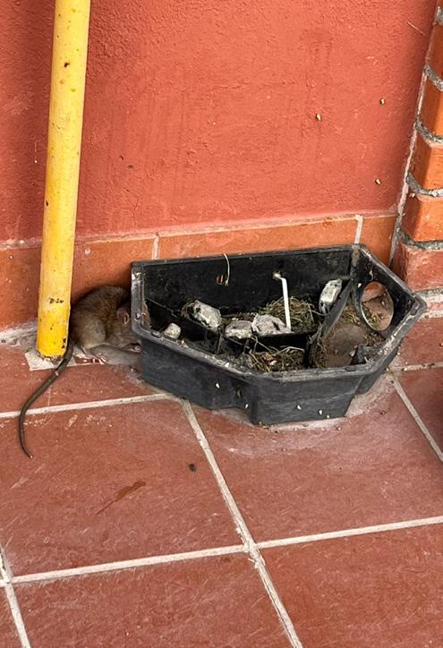 È stato anche possibile avvistare direttamente i ratti in tutte le zone perimetrali, giardini, pronto soccorso e guardiola dei custodi che arrecavano grosso disagio alle persone in queste zone. Dopo la fase di progettazione dell’intervento si è proceduto al posizionamento di circa 100 contenitori di esca biocida contenenti come principio attivo Bromadiolone e Flocoumafen e al trattamento delle tane e