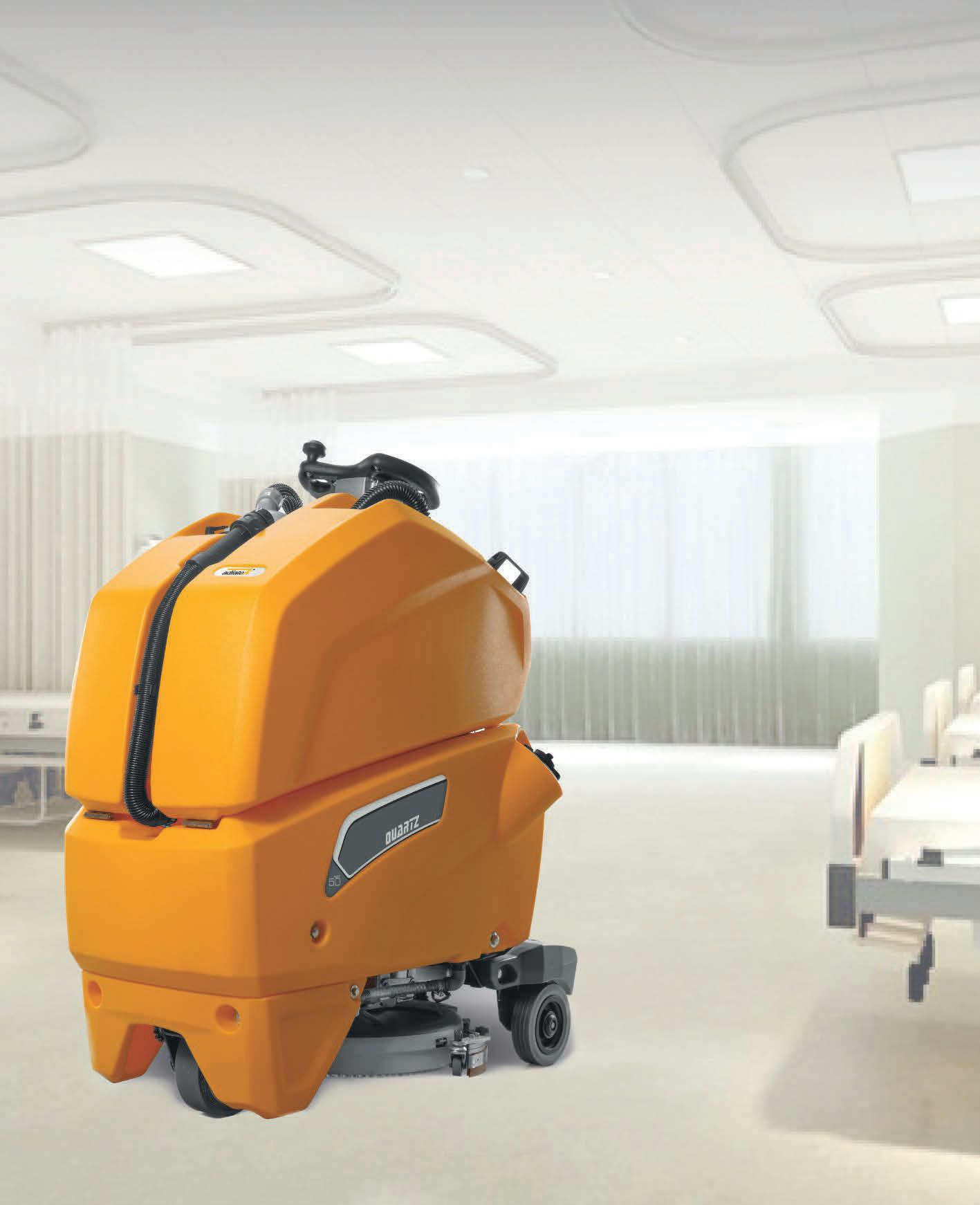 Le lavasciuga pavimenti equipaggiate con un generatore di Ozono (O) sono in3 grado di pulire senza l'uso di detersivi chimici in caso sia richiesta una disinfezione. Questa versione è altamente consigliata per ambienti ospedalieri ove è necessaria sia una pulizia che una sanificazione