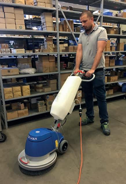stono modelli specifici, capaci di risol vere al meglio qualsiasi problema di sporco, montando le spazzole che più si addicono al pavimento oggetto dell’intervento di pulizia. In funzione della tipologia di superficie da igieniz zare, le spazzatrici si dividono in due grandi categorie: con uomo a terra o con uomo a bordo. Le prime, dagli ingombri più contenuti, si dividono in modelli manuali oppure a motore. Le