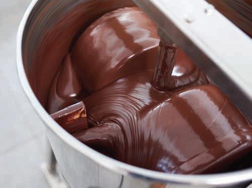 Durante il concaggio la massa di cacao è continuamente mescolata ad alta temperatura, fino all’ottenimento di una consistenza liscia e omogenea