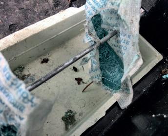 e consolidare. L’intuizione è stata confermata da un esperimento semplice quanto efficace: nastro biadesivo lungo il battiscopa, posizionato sia sul pavimento che sulla parete, e intorno alle prese elettriche. Dopo 24 ore, gli insetti risultavano incollati su entrambi i lati, dimostrando che emergevano dal muro, passando attraverso fessure invisibili e fori tecnici dei cavi elettrici. Aperte le prese elettriche, si è notato che, all’interno delle stesse e nei corrugati, vi erano numerosi insetti. Si è avuta un’ulteriore riprova a seguito di un sopralluogo nei capannoni adiacenti alla parete nord della struttura e adibiti a rimessa di macchine agricole. Guardando per terra è stata notata la presenza di notevole quantità di grano duro e residui vegetali, insieme a un importante numero di triboli della stessa specie, trovati esattamente dalla parte opposta del muro, all’interno dell’azienda in oggetto.