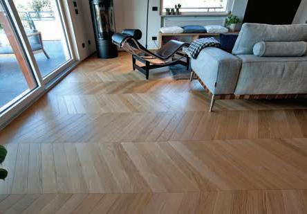 Il ritorno all’installazione di piccoli formati in geometrie a spina di pesce o ungherese ha dato un nuovo impulso e linfa all’utilizzo del parquet massello e alla posa tradi zionale, che permette realizzazioni di prestigio e durata senza pari.