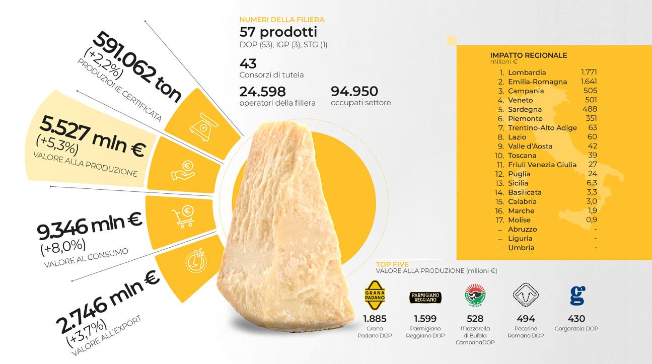 tro e nel meridione viene effettuata la maggioranza della produzione di mozzarella da gastronomia e della Mozzarella di bufala che presentano caratteristiche organolettiche elevate. Anche prodotti, modalità di consumo e distribuzione sono differenziati nel territorio nazionale. Nonostante un 2023 segnato da tensioni geopolitiche, alta inflazione, stretta creditizia e perdita del potere d’acquisto dei consumatori, il settore dei formaggi nella sua totalità, e quelli da tavola nello specifico, dimostrano ancora una volta di essere dotati di dinamicità, registrando solo un lieve calo a volume nonostante i forti incremento di prezzo.