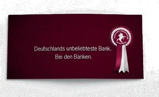 Wir rütteln wach mit der Kampagne „Deutschlands unbeliebteste Bank. Bei den Banken“.