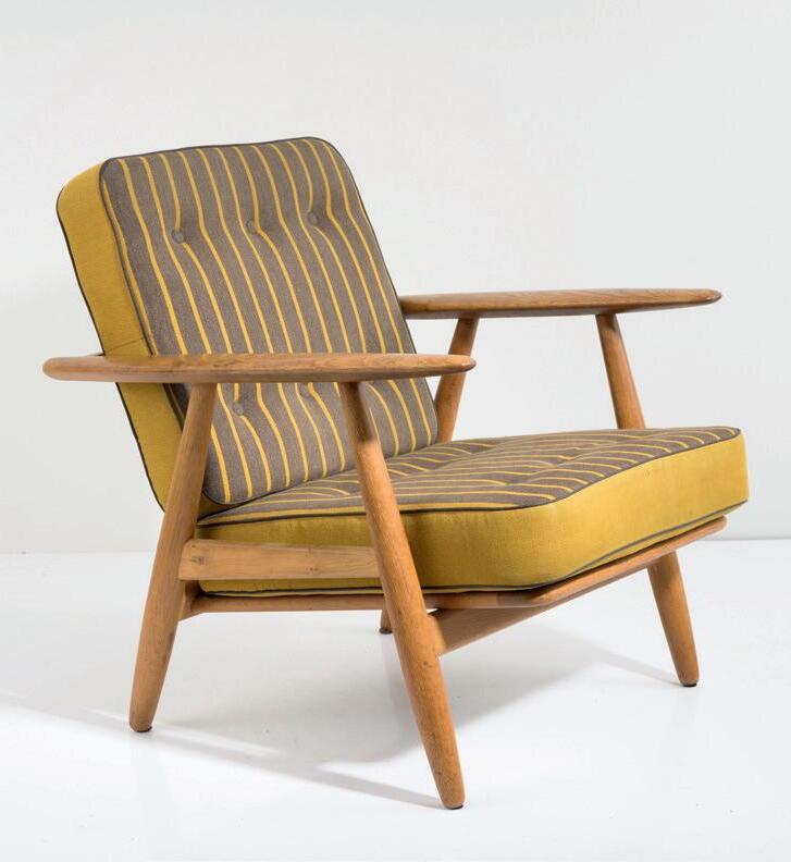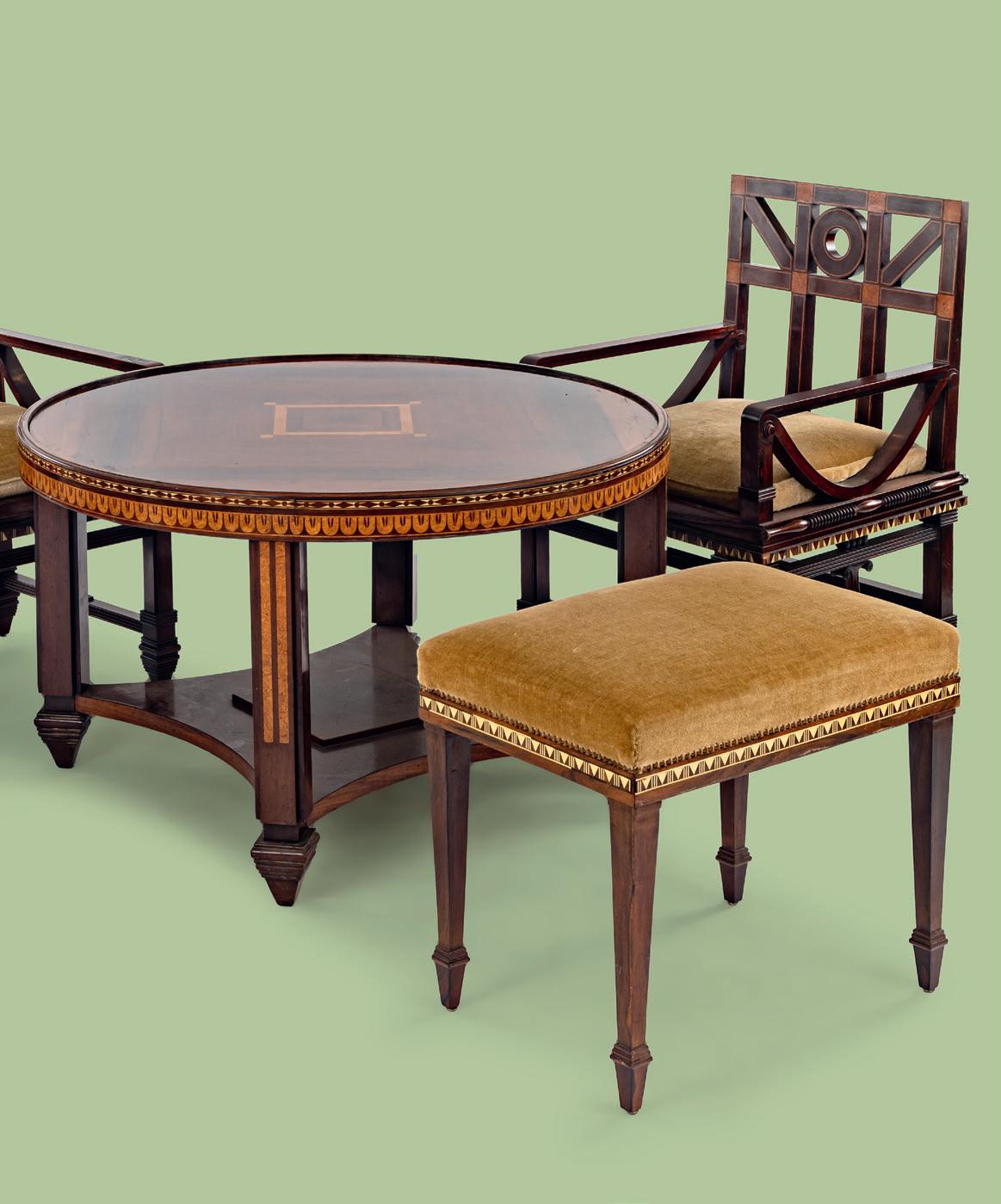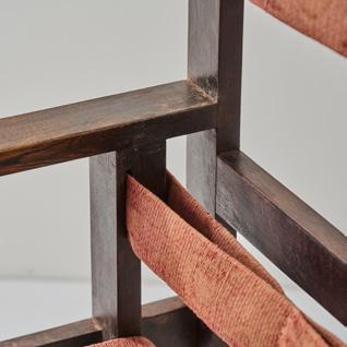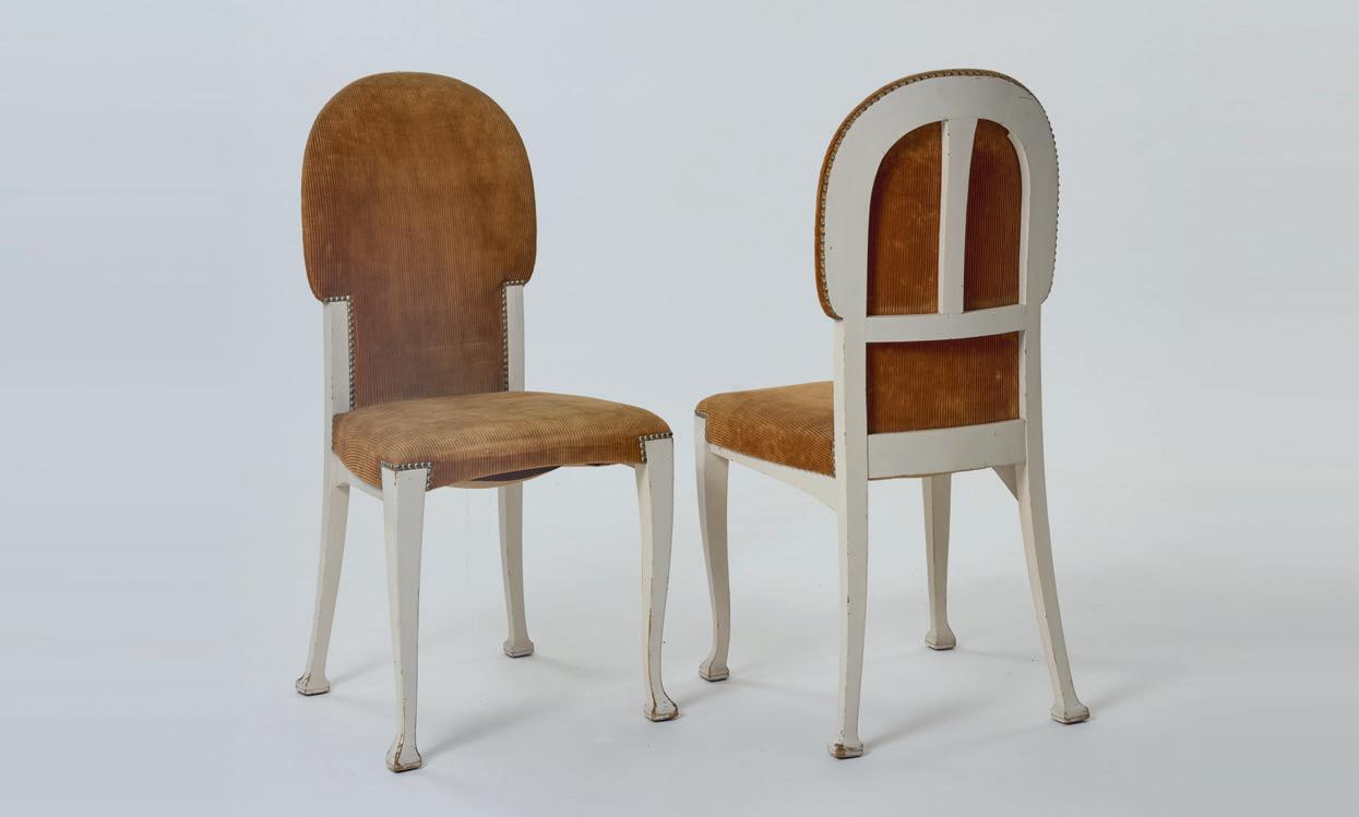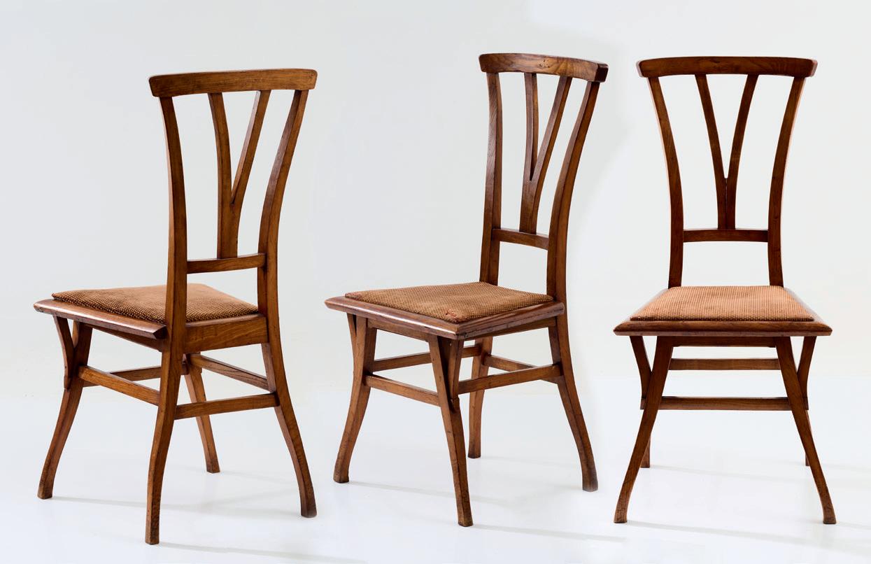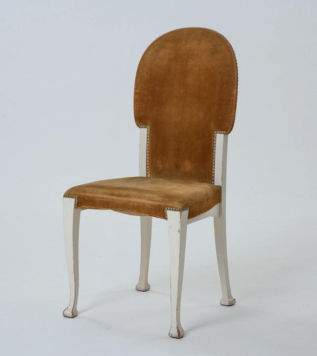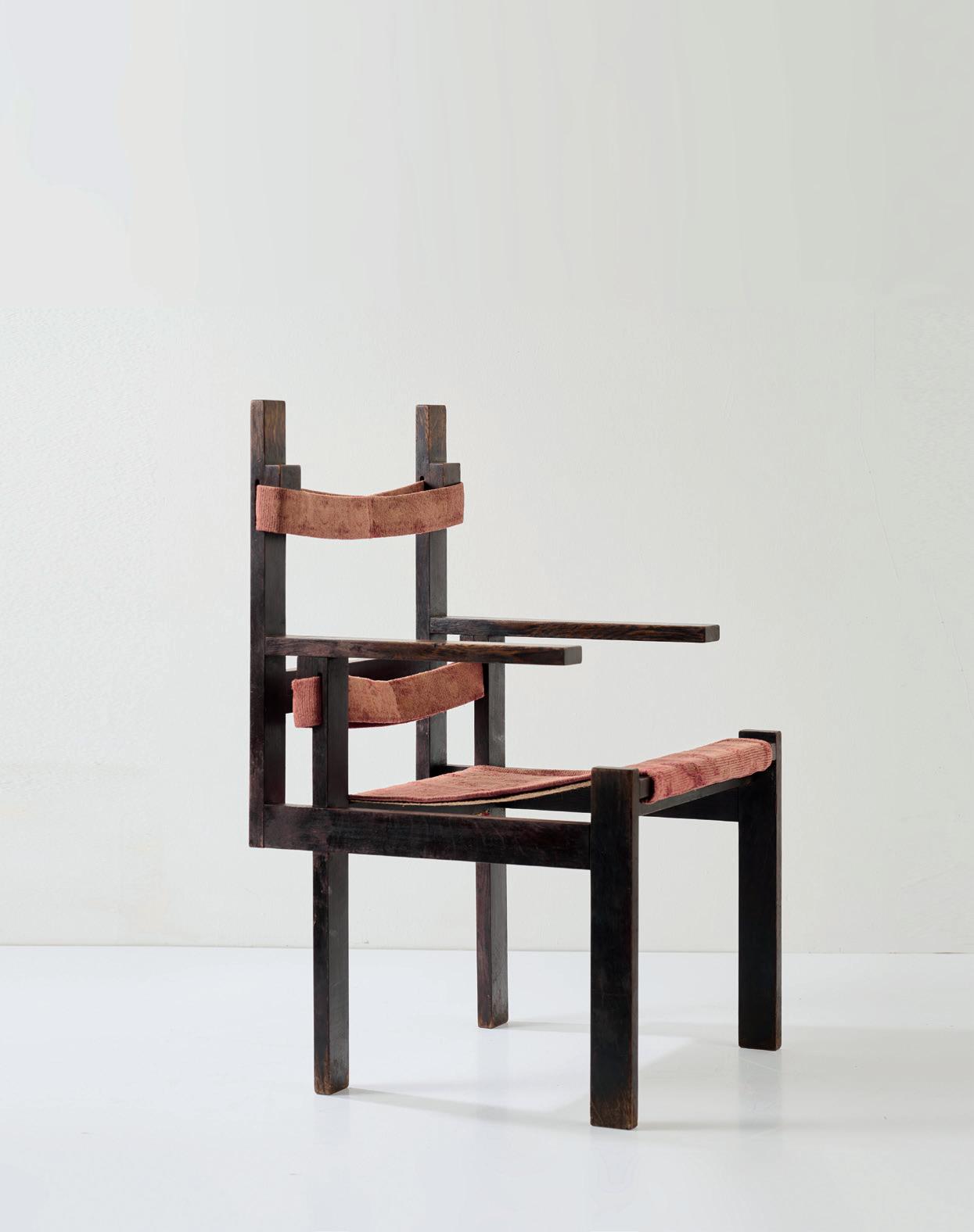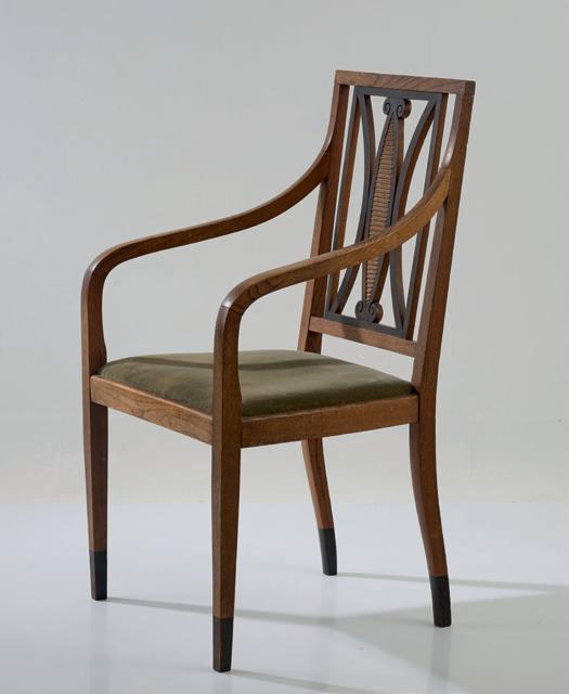 Seat covered with fabric (damaged). Provenance: Family property, Belgium. Online cat. rais. No. 1783; Föhl/Walter, Henry van de Velde und sein Beitrag zur europäischen Moderne, Weimar 2013, p. 176; Pecher, Henry van de Velde, Vol. 1, Munich 1981, pp. 90 ff.; Text p. 269; on the problem of the manufacturer, see ibid., p. 268.