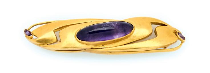 Gold, amethysts. 11.04 grams. 59 x 13 mm. Unmarked.