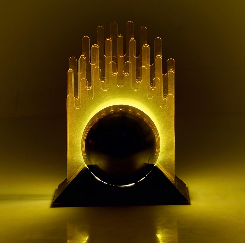 Nickel-plated sheet metal, yellow acrylic glass.