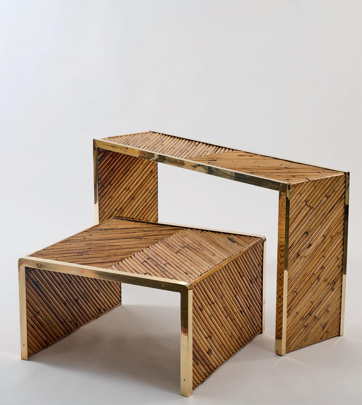 Sheet brass, bamboo cane, chipboard.
