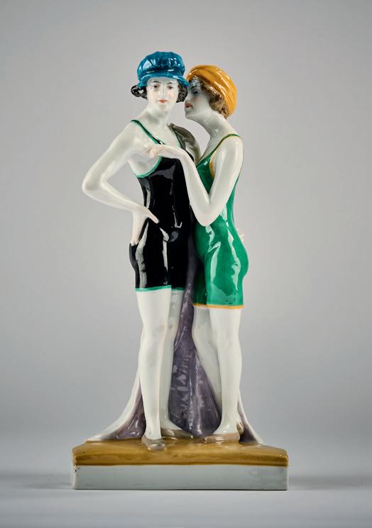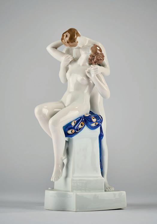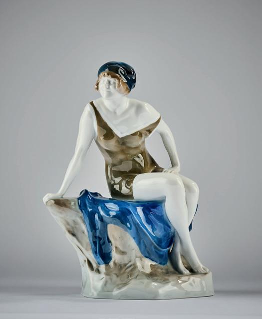 'At the Beach', 1913 H. 38 cm. Execution: Rosenthal, Selb, c. 1914. Porcelain, white, glazed, polychrome underglaze. Rock signed: RUDOLF MARCUSE (pink). Marked on the bottom: manufacturer's mark (green, under glaze), K 294 (embossed).