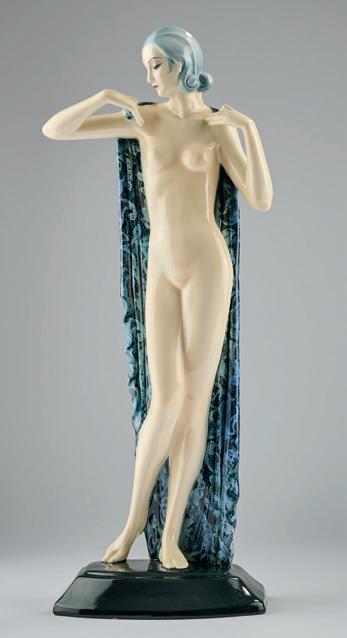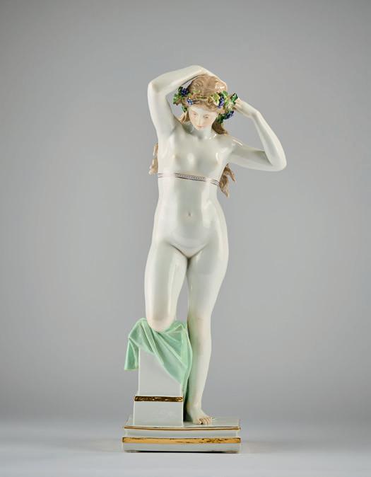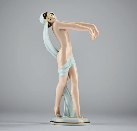 'Before the Bath', 1913 H. 26.5 cm. Execution: Rosenthal, Selb, c. 1914. Porcelain, white, glazed, polychrome underglaze. Base signed: RUDOLF MARCUSE (brown). Marked on the bottom: manufacturer's mark (green, under glaze), K. 316 (embossed).