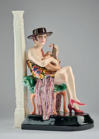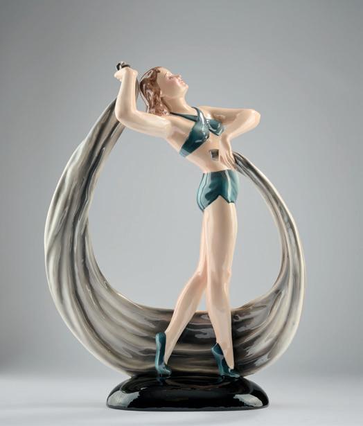 H. 38.8 cm. Execution: Friedrich Goldscheider, Vienna. Earth enware, polychrome glaze. Base signed: Lorenzl (embossed, indistinct). Bottom marked: Goldscheider Wien, MADE IN AUSTRIA HAND-DECORATED (black glaze stamp), 5548 45 12, 5M (em bossed),