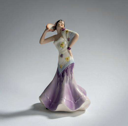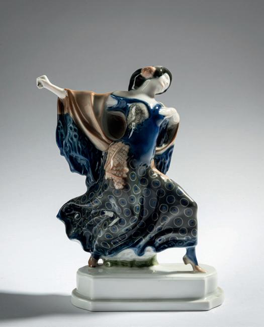 Duxer Porzellan-Manufaktur AG, form. Eduard Eichler Spanish dancer, c. 1930 H. 21.2 cm. Earthenware, polychrome glaze. Marked: ROYAL DUX Germany (green glaze stamp), 130, 29 F (embossed).