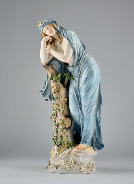 The figure was part of a mantel clock. Treskow, Die Jugendstil-Porzellane der KPM Berlin, Munich 1971, p. 206, cat.-no. 177; Bröhan-Museum Berlin, Berliner Porzellan vom Jugendstil zum Funktionalismus, Berlin 1997, p. 146, cat.-no. 207.
