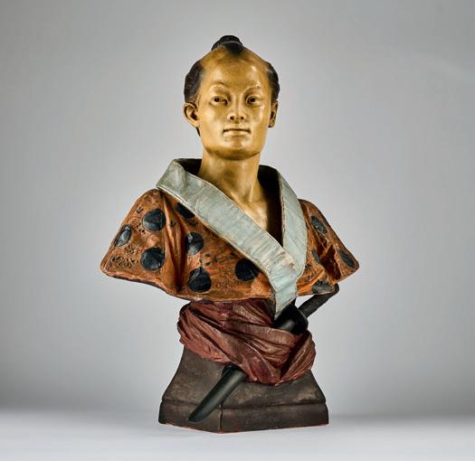 H. 39.5 cm. Execution: Friedrich Goldscheider, Vienna. Earthen ware, polychrome glaze. Marked on the bottom: Goldscheider Wien, HAND-DECORATED MADE IN AUSTRIA (black glaze stamp), 5600 23 6 03 (embossed), AC (black, handwritten). Framers's Sidney sales label.