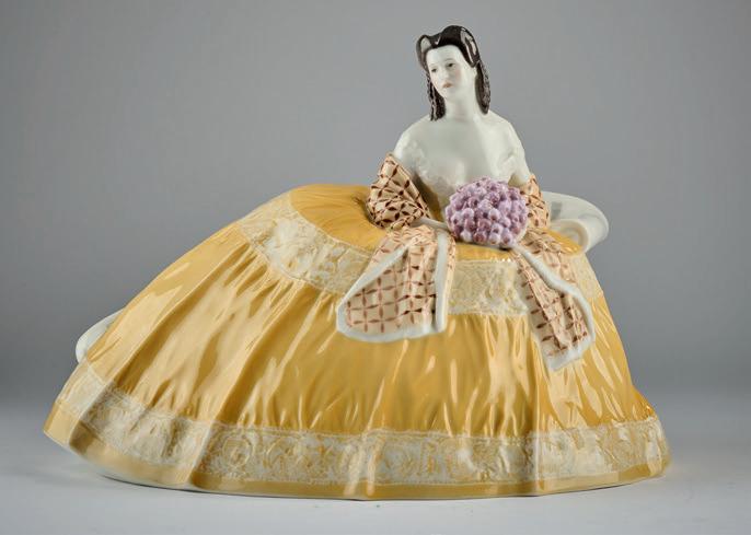 Johanna Meier-Michel Crinoline 'Spring', c. 1908 H. 29.5 cm. Execution: Gmundner ceramics. Earthenware, polychrome glaze. Marked: Signet of the Gmundner ceramics, 22 (embossed).