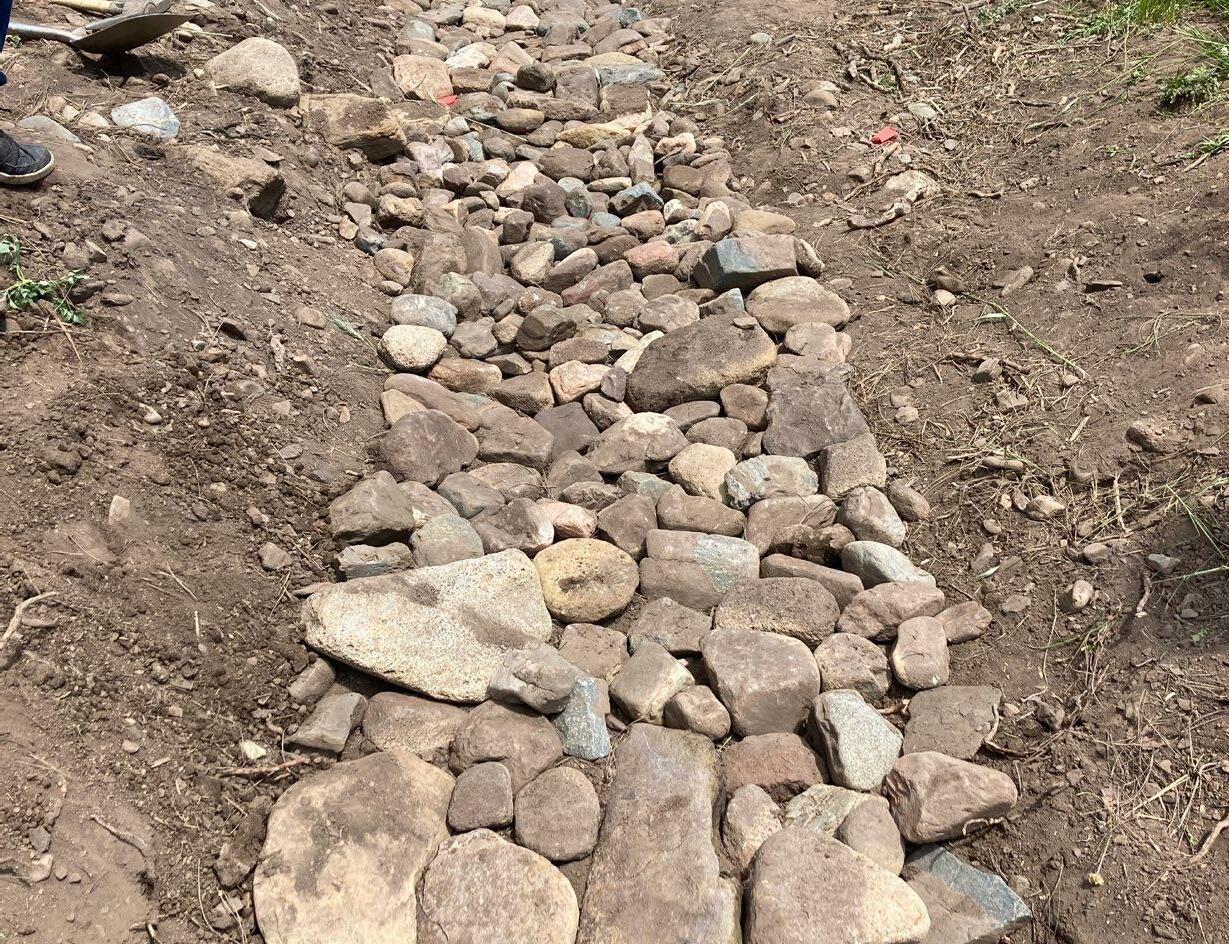 Armour the sides of the trench with rocks to stabilize the surface.