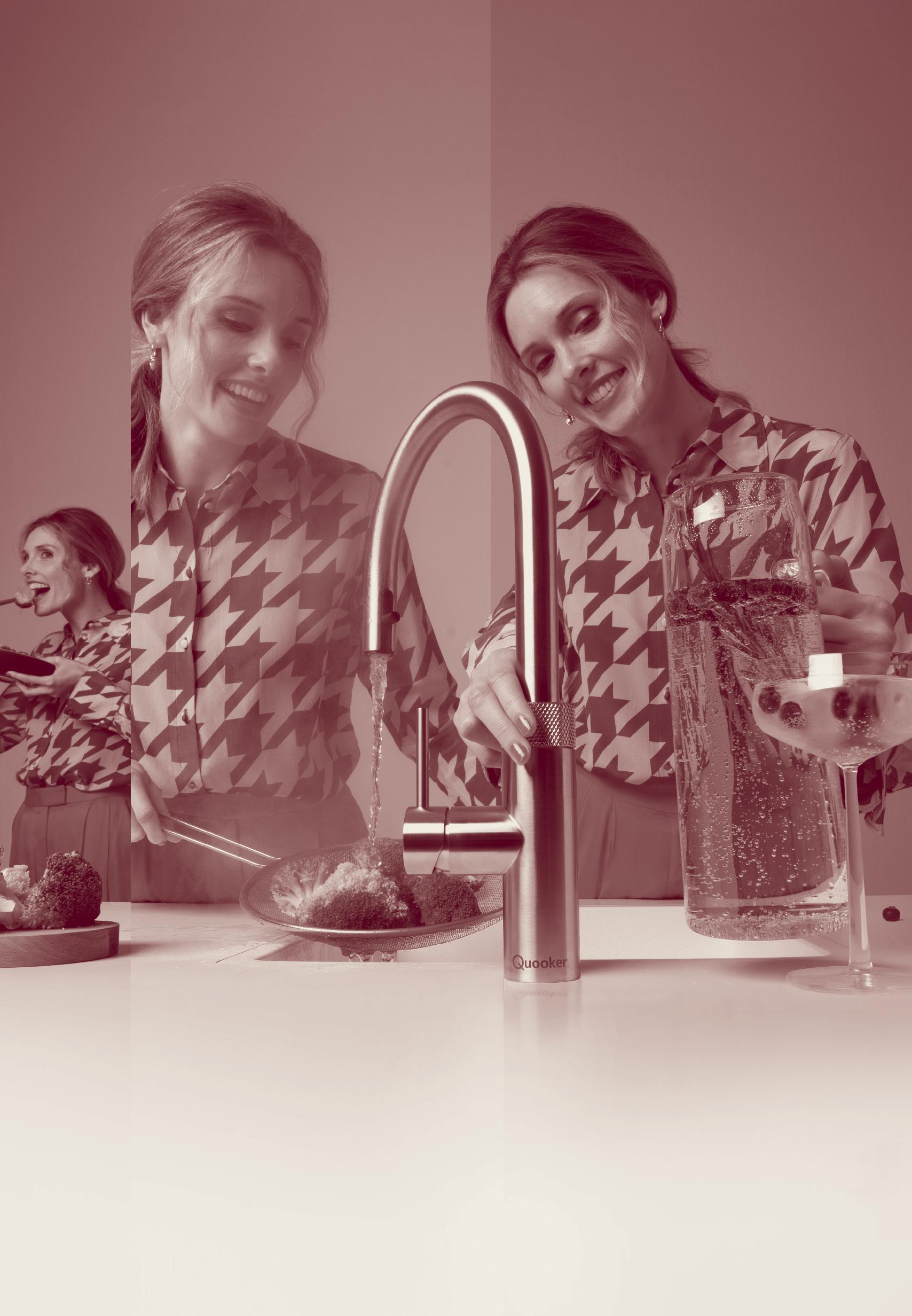 Un sistema Quooker consiste in un rubinetto sul piano di lavoro e in un serbatoio nel pensile della cucina sottostante. Esistono tre diversi serbatoi. Volete anche acqua frizzante e liscia fresca? Allora combinate il vostro Quooker con un CUBE. Qui