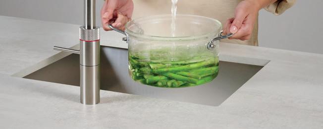 Brew a pot of tea. Boil pasta. Blanch vegetables. Or clean that greasy casserole dish. Boiling water straight from the tap comes in handy many times each day. With the Quooker CUBE, you can also dispense chilled and sparkling water in seconds, from the very same tap.