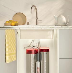 A Quooker frees up valuable space in the kitchen. Electric kettles are now a thing of the past. The boiling water tank and the CUBE are extremely compact and can easily be combined with other elements in your kitchen cupboard, like a waste-sorting system.