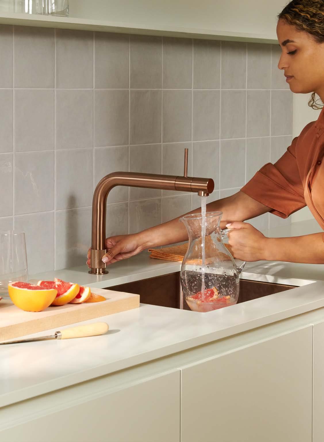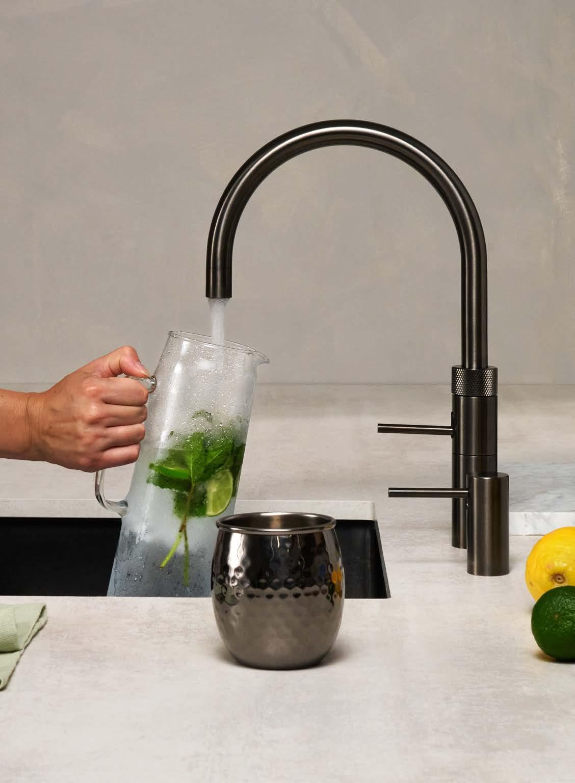 Zaparz herbatę w dzbanku. Ugotuj makaron. Blanszuj warzywa. Umyj tłustą brytfannę. Wrzątek prosto z kranu przydaje się w kuchni w dziesiątkach codziennych sytuacji. A dzięki urządzeniu Quooker CUBE, w kilka sekund możesz nalać również schłodzoną niegazowaną lub gazowaną wodę — wszystko z jednego kranu.