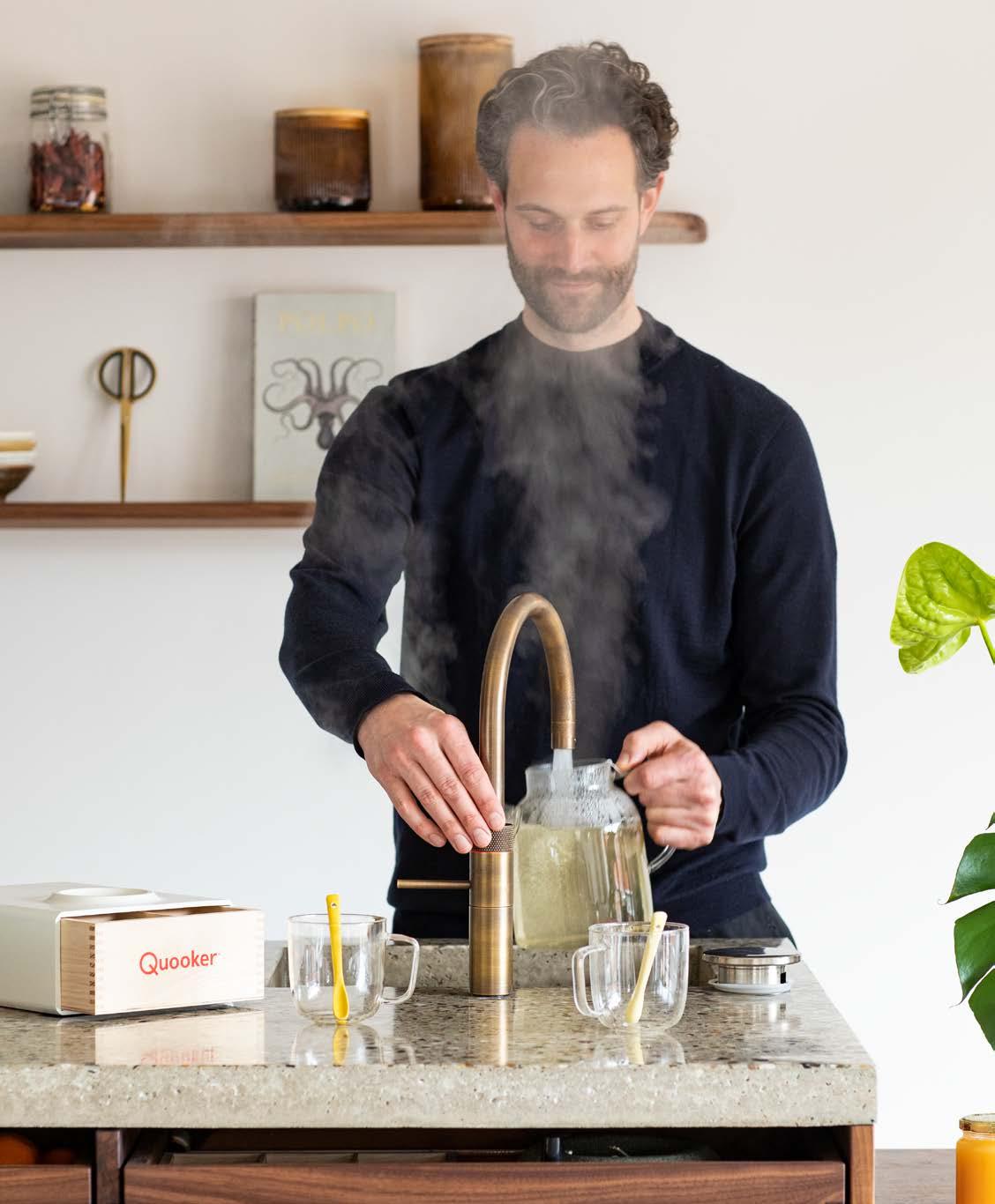 Quooker – kran, który potrafi wszystko. Quooker zasłynął jako pionier wśród kranów z wrzątkiem. Dziś oferuje znacznie więcej. Z jednego kranu możesz nalać wodę zimną, ciepłą oraz wrzącą. A dzięki wprowadzeniu na rynek urządzenia CUBE, dostępna jest również woda schłodzona i gazowana.