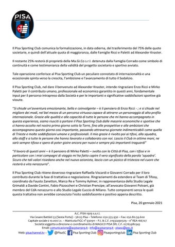 Il comunicato societario