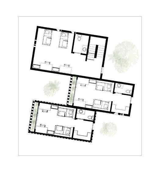 The second portion consists of the educational facilities which include a mosque and the classrooms. The traditional mosque holds an entrance facing the public road, inviting this part of the center to belong once again to any worshiper. The classrooms and workshops alongside it, placed together in a circle and facing a courtyard adorned by Malawi’s national tree, bring about a sense of privacy and contemplation. Amongst them can also be found a small clinic for treating medical emergencies and pre-natal care for women. Lastly, the third portion at the lowest part of the center is a guest house that hosts any temporary educators, sheikhs, and other visitors. It also holds a barn and sizable vegetable garden that would feed the residents of the center and community when needed.